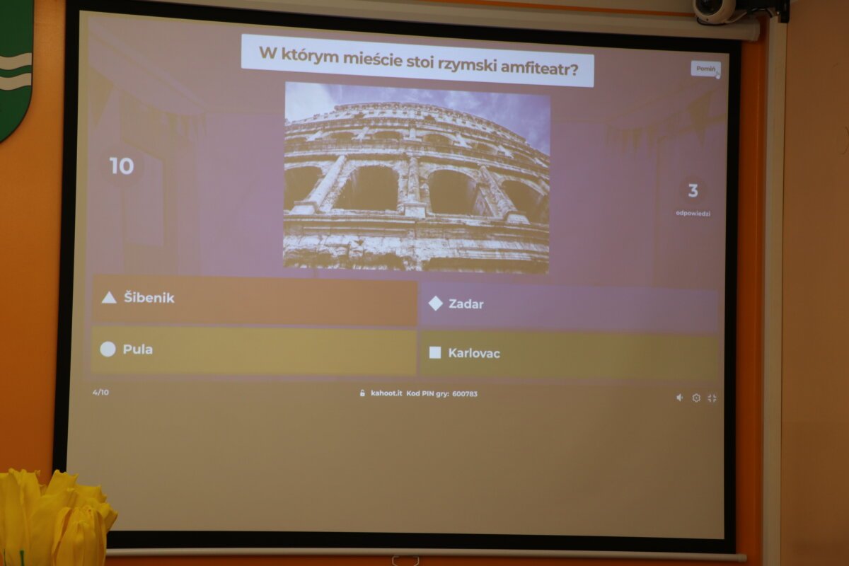 🌍 Chorwacja bliżej nas Uczestnicy sprawdzili swoją wiedzę w interaktywnym quizie! Szukaliśmy ciekawostek o Chorwacji i odkrywaliśmy zaskakujące podobieństwa w naszym słownictwie. Okazało się, że mimo setek kilometrów, wiele nas łączy!